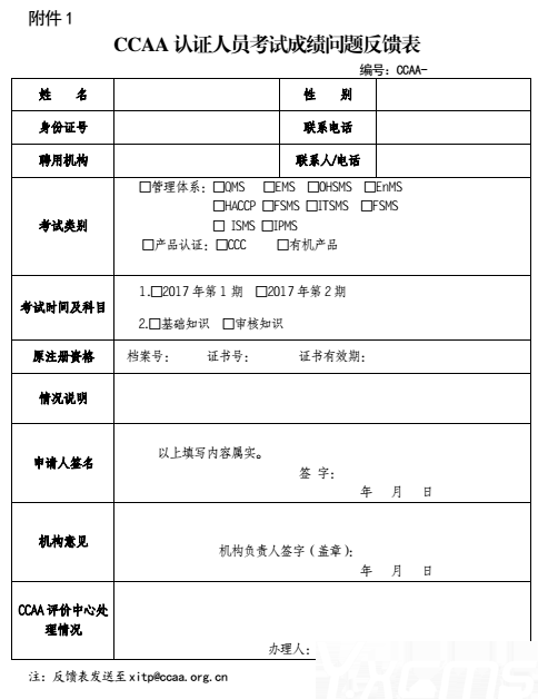 1.《CCAA 認證人員考試成績問題反饋表》