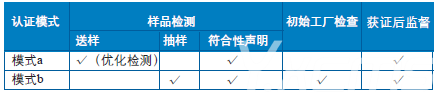 2.模式b:抽樣檢測(XRF掃描+化學檢測+供方符合性聲明)+ 初始工廠檢查 + 獲證后監督(抽樣檢測和必要時工廠檢查)該模式XRF掃描范圍為所有抽樣材料樣品和實驗室有理由判斷限用物質有存在可能性的情況。兩種認證模式要素詳見附表。